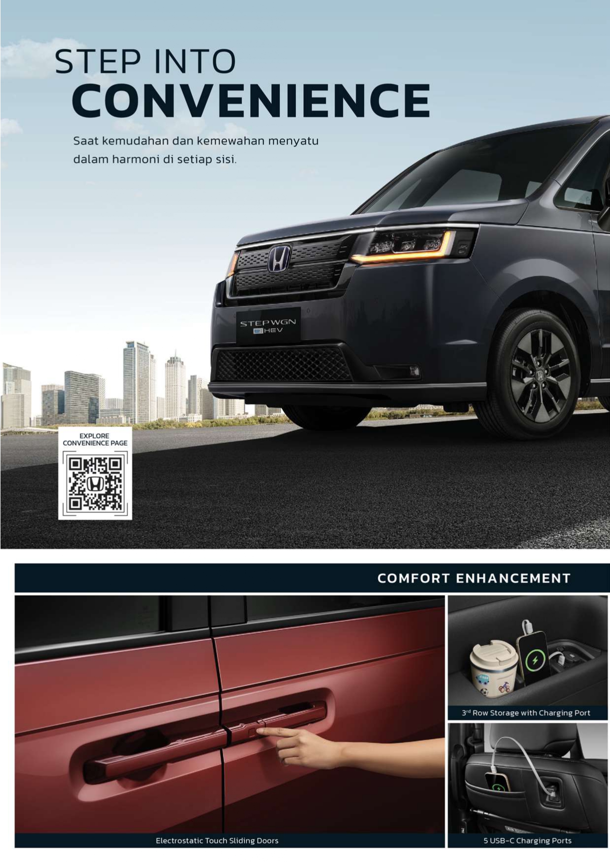 Dengan pintu geser elektrik, ruang kabin lega, serta konfigurasi kursi fleksibel, Honda Stepwgn menawarkan kenyamanan maksimal bagi penumpang. Suspensi empuk dan pengendalian stabil membuat perjalanan terasa halus dan menyenangkan. Dilengkapi fitur keselamatan modern dan sistem hiburan terkini, Stepwgn memberikan pengalaman berkendara yang aman dan premium.